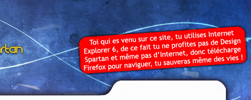 Par contre, je tiens à dire quelques mots à propos de la mise en place de ce design, au niveau du CSS j’ai du créer un autre CSS pour régler les bugs d’IE7… et pour IE6 c’est la misère, tout simplement car un deuxième design a presque dû être crée exprès pour ce navigateur moisi. Néanmoins, vu que IE6 ne prend pas en charge la transparence des PNG, le design est quelque peu « austère ». Il faut donc migrer sur Firefox !